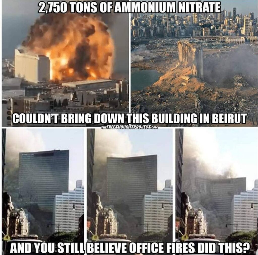 - Yet it collapsed symmetrically into its own footprint at near free-fall speed – something that requires uniform failure across all 47 steel support columns, almost simultaneously. That doesn’t happen from office fires. Never has. Never will.