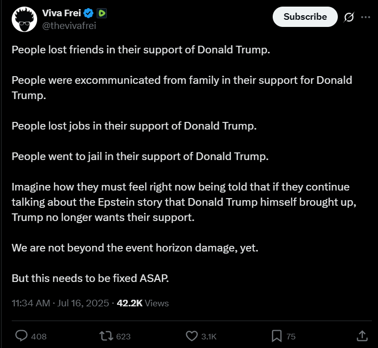 Critics point to historical context: Trump’s past associations with Epstein, documented in flight logs and social circles, and his initial silence on the issue during his first term, as noted in a 2022 NPR analysis of “Deep State” resistance. The current backtrack could be seen as a pragmatic move to protect his administration from legal or political fallout, especially as a Reuters report from July 14, 2025, indicates mid-term elections loom large, with transparency on Epstein potentially jeopardizing GOP unity.