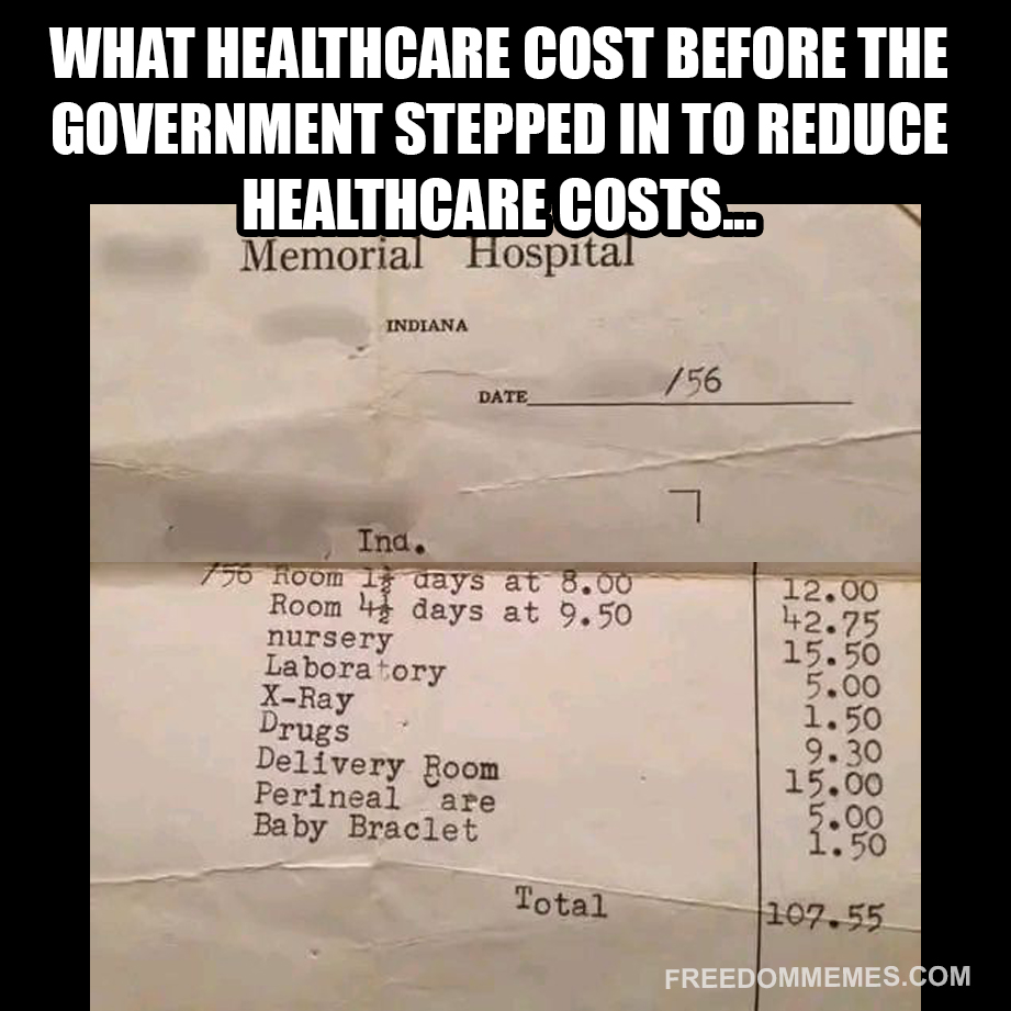 That's what a baby birth cost at a hospital before the government stepped in to reduce the cost of healthcare.